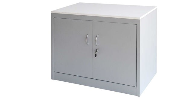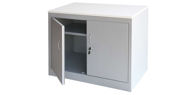 Armario bajo metálico con puertas.