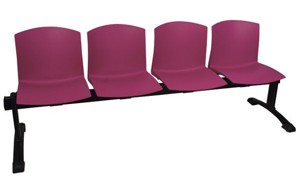 Bancada con armazón de estructura metálica de 80x40 pintada en epoxi negro, pies de bancada de tubo de oval de 60x30 pintada en epoxi negro, plazas formadas por monocasco de polipropileno.