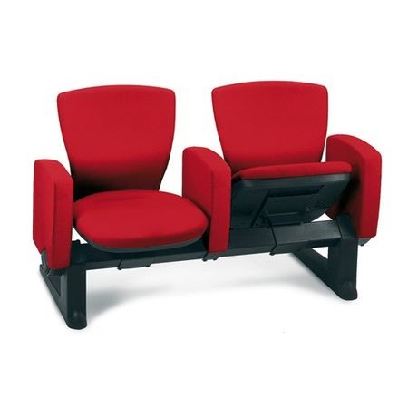 Bancada formada por asiento abatible y respaldo tapizados sobre espuma de poliuretano de alta densidadd, brazos fijos tapizados, estructura metálica negra pintadas en epoxi negro y patas de poliuretano negro.