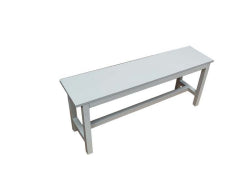 Banco mod. Yakarta de 120 x 30 x 48. Estructura pintada en epoxy gris 7035. Tablero de melamina gris.