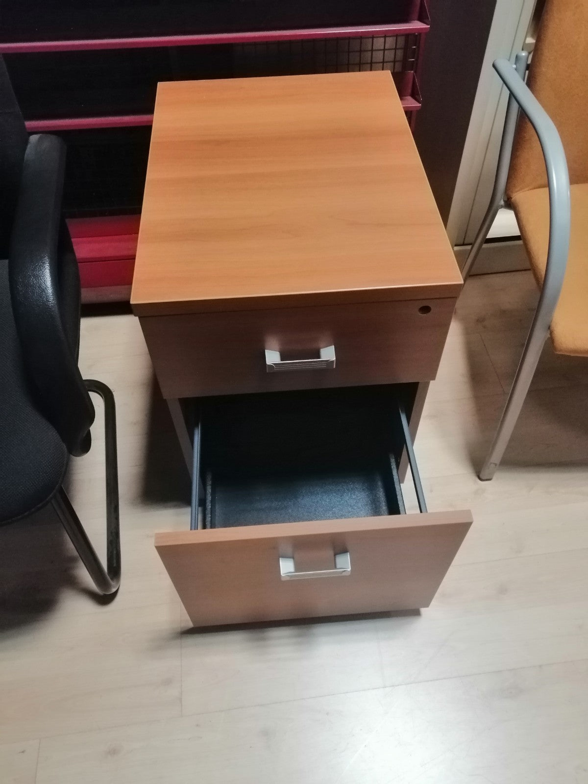 Cajonera nueva, por renovación de exposición, de cajón + archivo, de melamina color nogal.