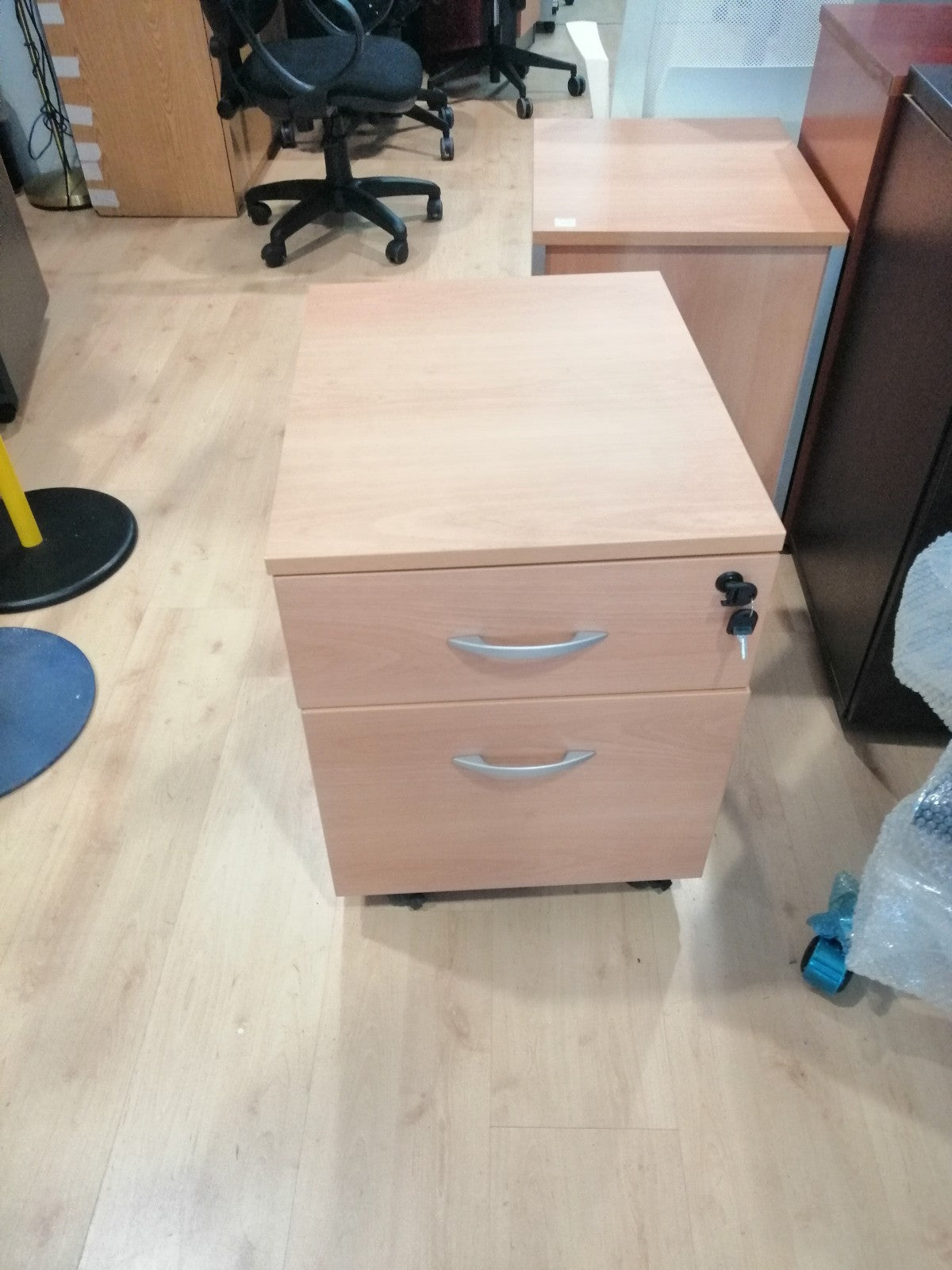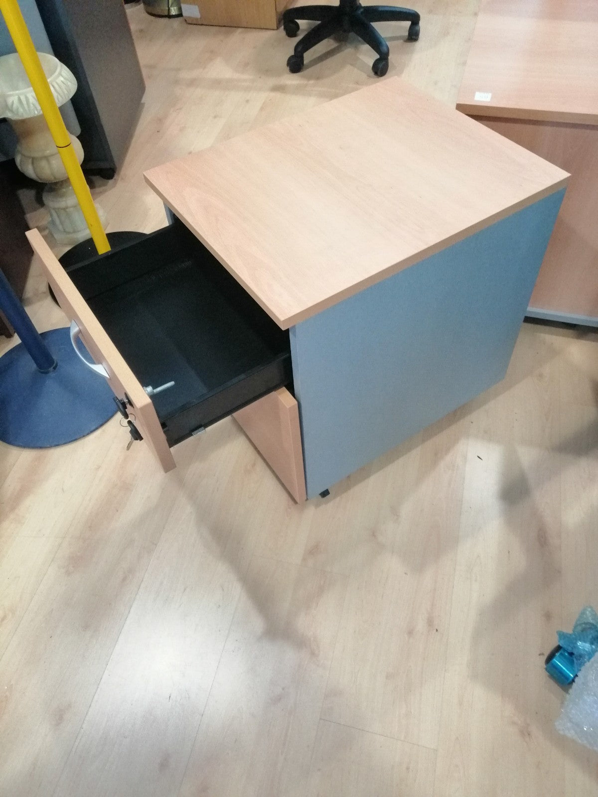 Cajonera nueva, por renovación de exposición, de cajón + archivo, de melamina color haya-gris aluminio.