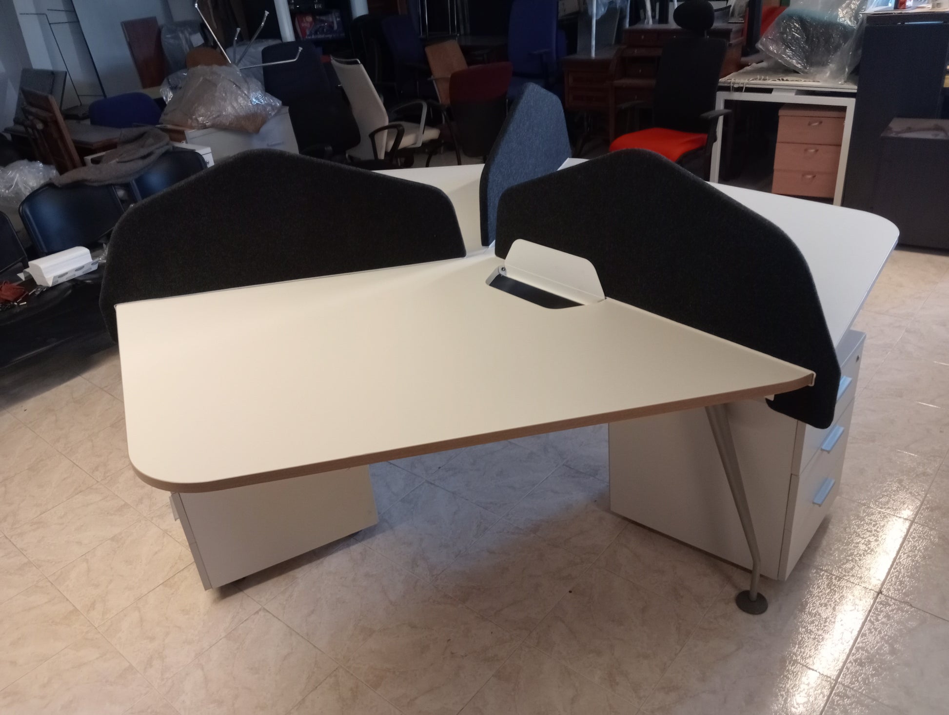 Compacto de 4 puestos con separador y pasacables. CAJONERA OPCIONAL NO INCLUIDA EN EL PRECIO.