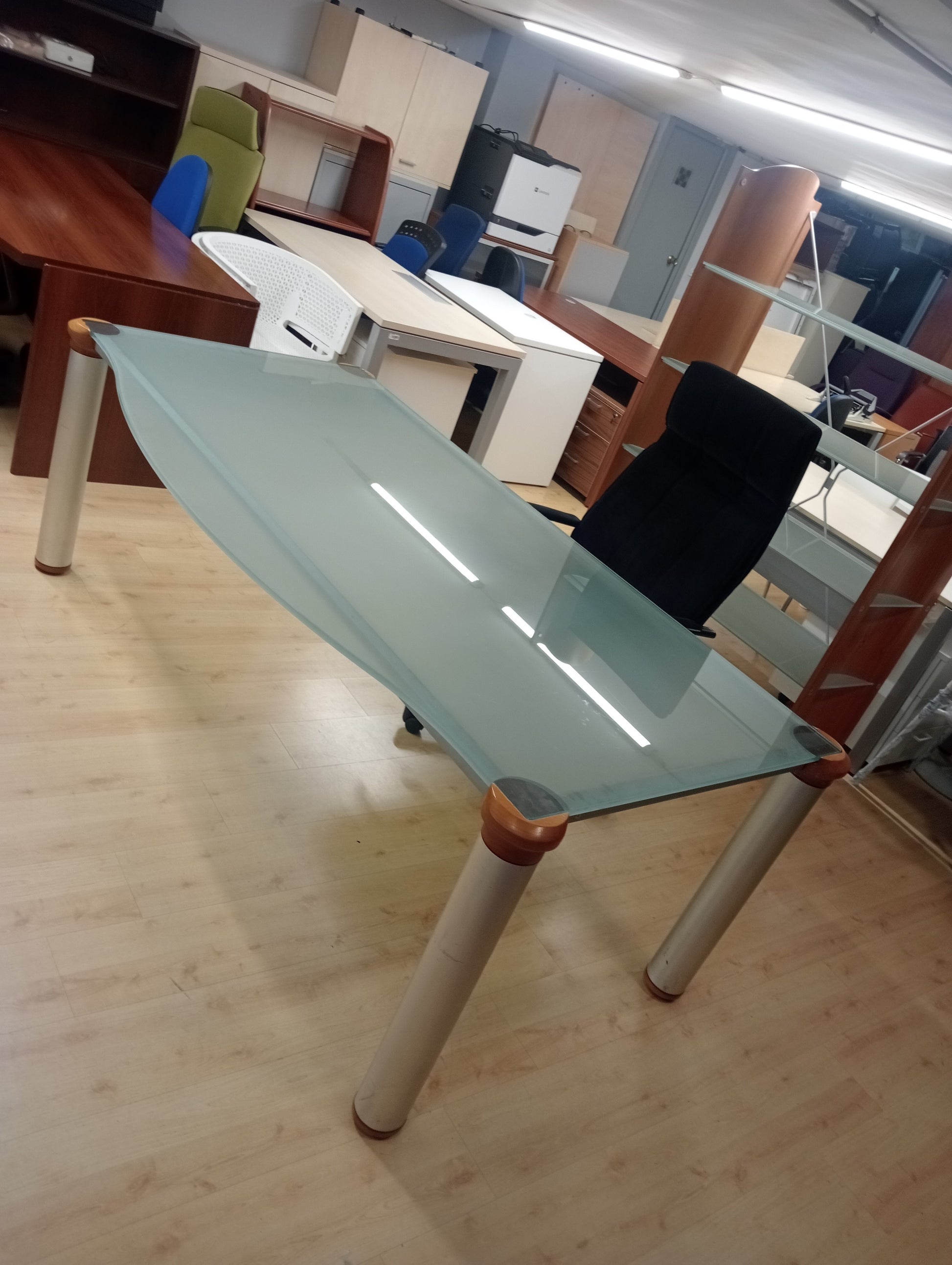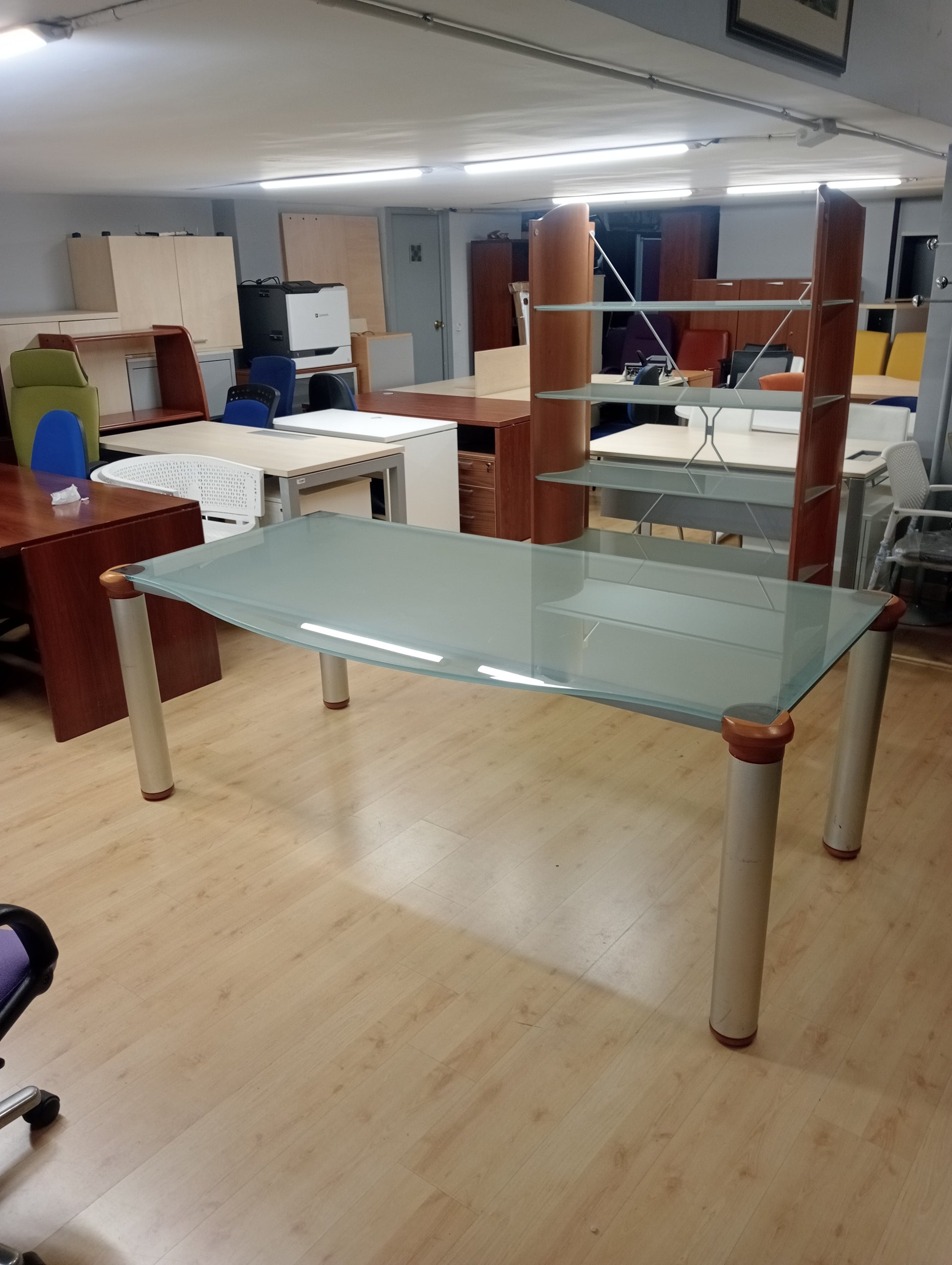Despacho formado por: Mesa de dirección y estantería de cristal, el precio incluye las dos cosas (sillón no incluido), se podría vender por separado: