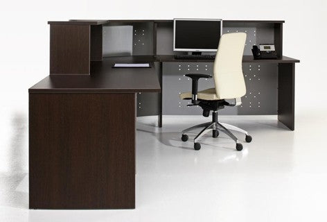 Mostrador formado por mesa con altillo con frente metálico o de madera (opcional).