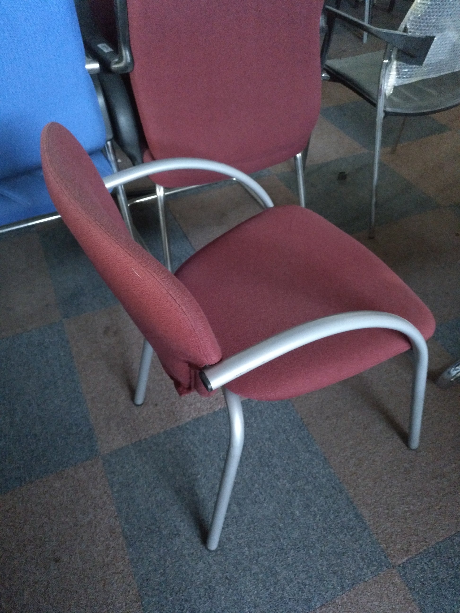Silla fija formada por asiento y respaldo tapizado en bali granate, contra de respaldo tapizado a juego, estructura metálica pintada en epoxi color plata.