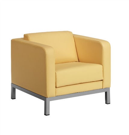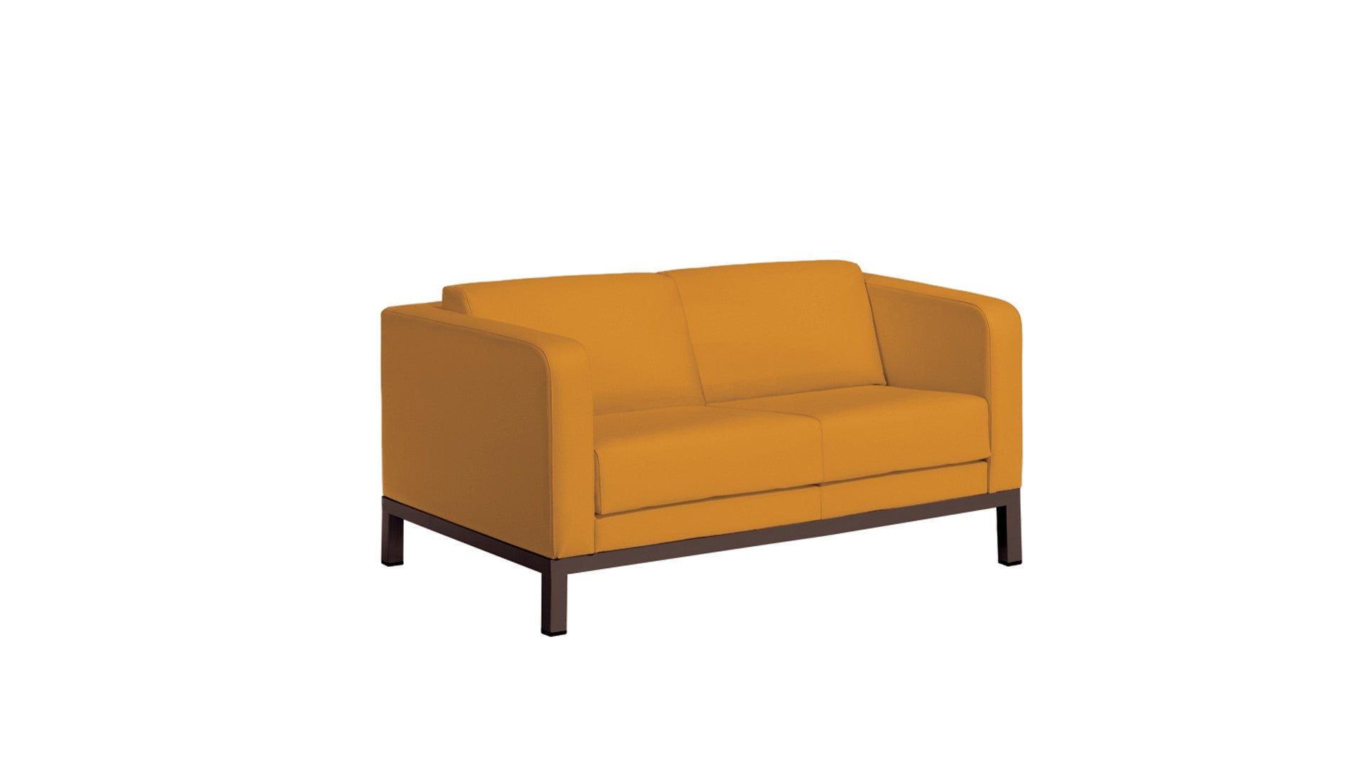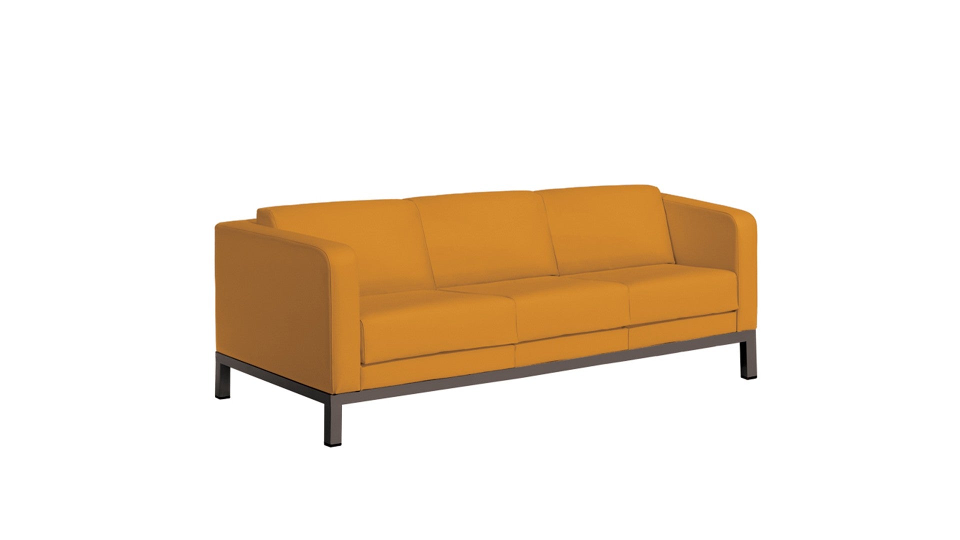 Sofá formado por estructura interior de madera maciza con sistema de suspensión de asiento y respaldo por cinchas elásticas. patas integradas en estructura rectangular de tubo de acero que enmarca todo el perímetro, acabado gris, asiento y respaldo tapizado sobre espuma de poliuretano de alta densidad.